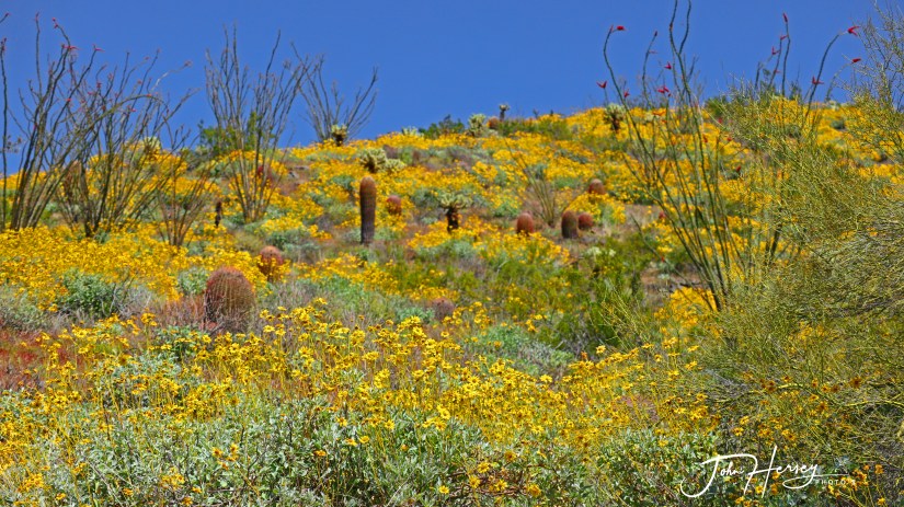 A short one mile walk from our home is the showcase of Fountain Hills — Fountain Park. This time of year the color is usually bursting. We were not disappointed with the color but there were very few people.