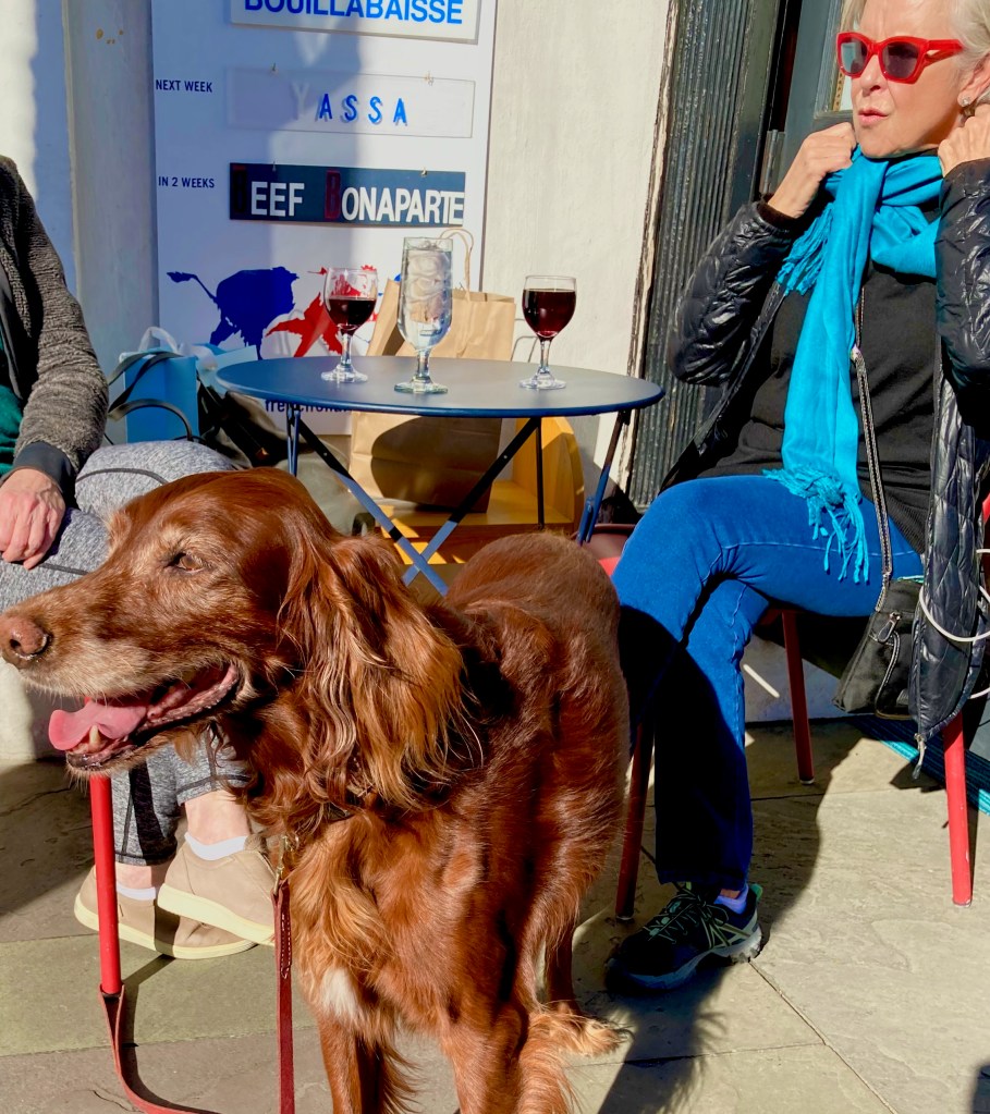 We have had the good fortune of making many new and lasting friends during our travels. Some of these were the homeowners of the pets we sit. But many have been individuals we have met while having a coffee or cup of tea. So it was with Chris Caldwell and her beautiful Irish Setter Madigan (Maddy). They were waiting for a take-out order of food as we passed by on our first day. We joined them for a glass of wine, had lunch the following day and hope to return to visit, and sit for Maddy, in the future.