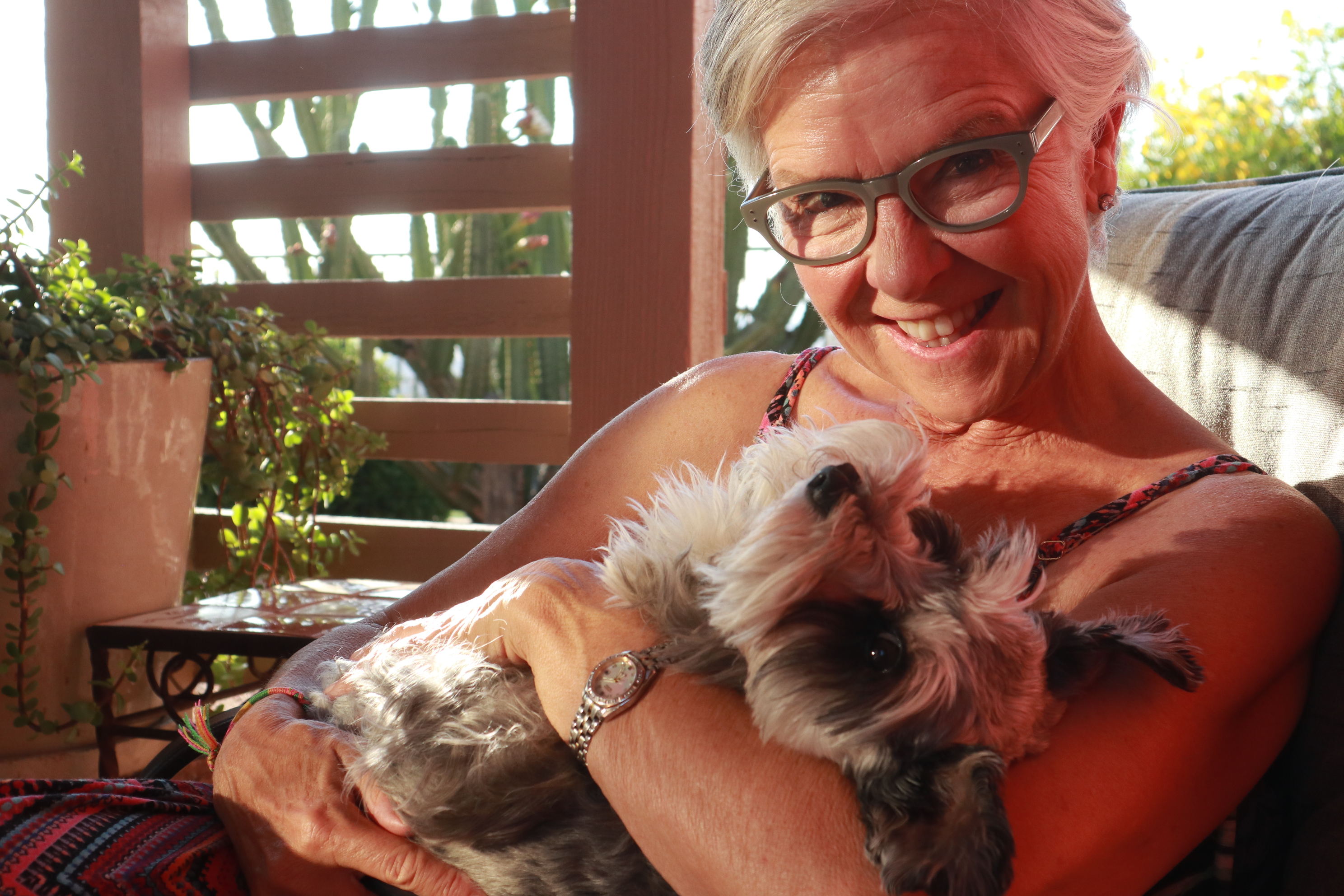 “Have just had wonderful sitters, Bev and husband John who looked after my two little dogs Mitzi and Pepper as they’ve never been looked after before, wonderful walks up the mountain every day and when little pepper got tired her Aunty Bev would pick her up and carry her in a baby sling which she loved. The dogs adored them and have been thoroughly spoiled, PLUS I feel that we have become great friends and one day they might return for another sit.”